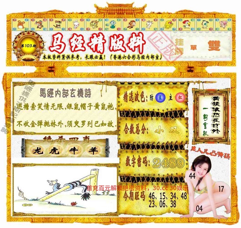 106期:必中九肖→蛇鼠狗龙兔猴猪马牛 |
